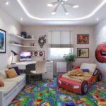 Для придания комнате индивидуальности можно использовать декоративные элементы – постеры с изображениями любимых персонажей, подушки с необычными узорами, ковры или покрывала с яркими принтами.
